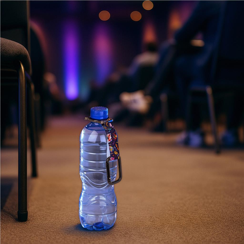 This is a compact and practical hands free bottle carrier which will keep hydration close at hand. The unique accessory features a durable metal fitting on one side that securely attaches to most standard water bottles, allowing you to carry your drink conveniently and hands-free. On the other end, a sturdy metal carabiner clip lets you fasten the strap to a bag, belt loop, or backpack, making it useful for outdoor events, sports days, trade shows, or daily commuting. For brand exposure, the strap is custom printed in full color on one side, ensuring that a logo or campaign message is always visible. Compact, lightweight, and practical, this is a promotional giveaway that will be used often. This product is made to order and requires a minimum order quantity of 100 units. Samples pre-branded with a standard design are available under code SE-AL-11-B.