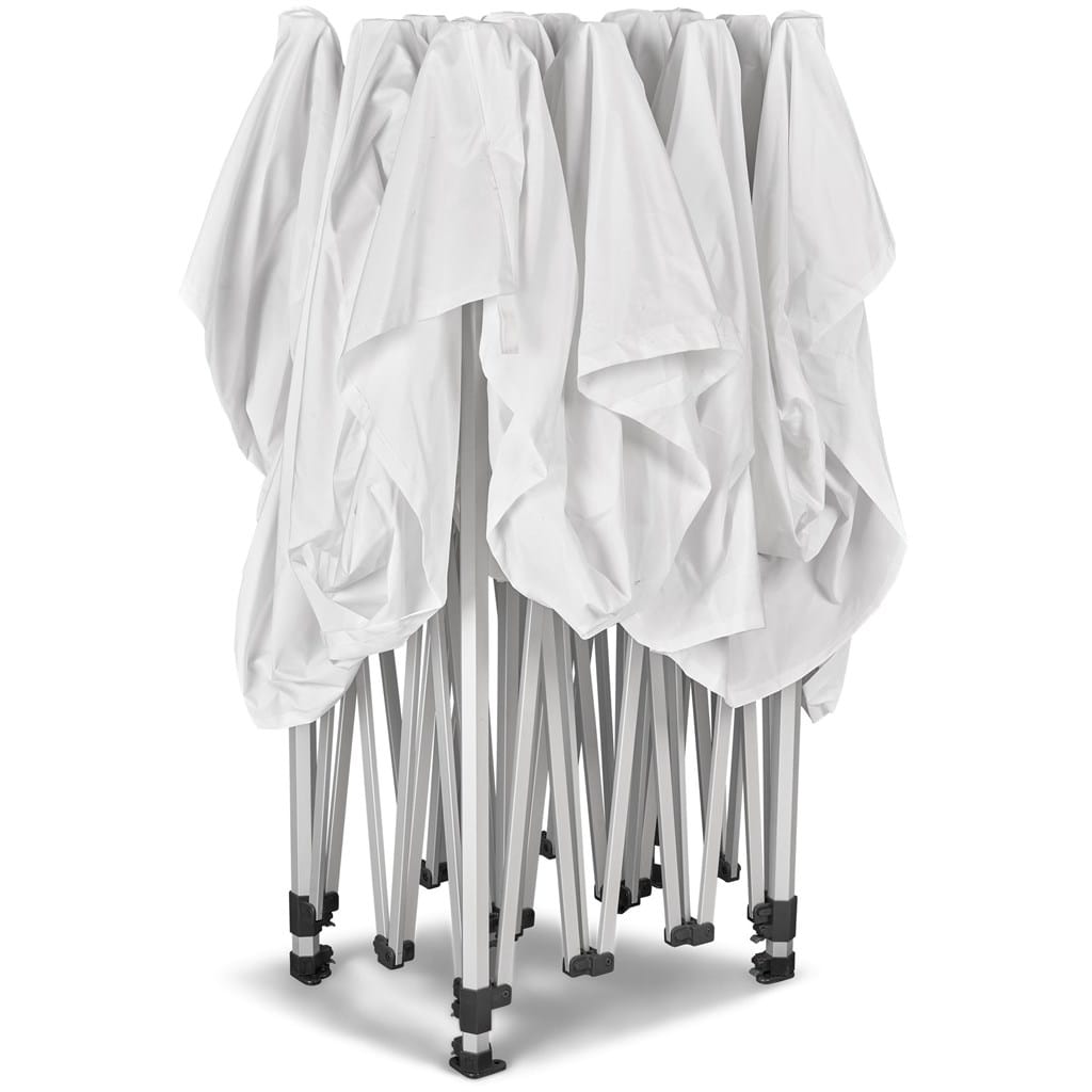 This gazebo has a slightly bigger footprint, accomodating for extra retail or display space. Perfectly fits 2 trestle tables under roof and big enough to fit 1 vehicle. That extra space might come in handy depending on the activation, product launch or event at hand.